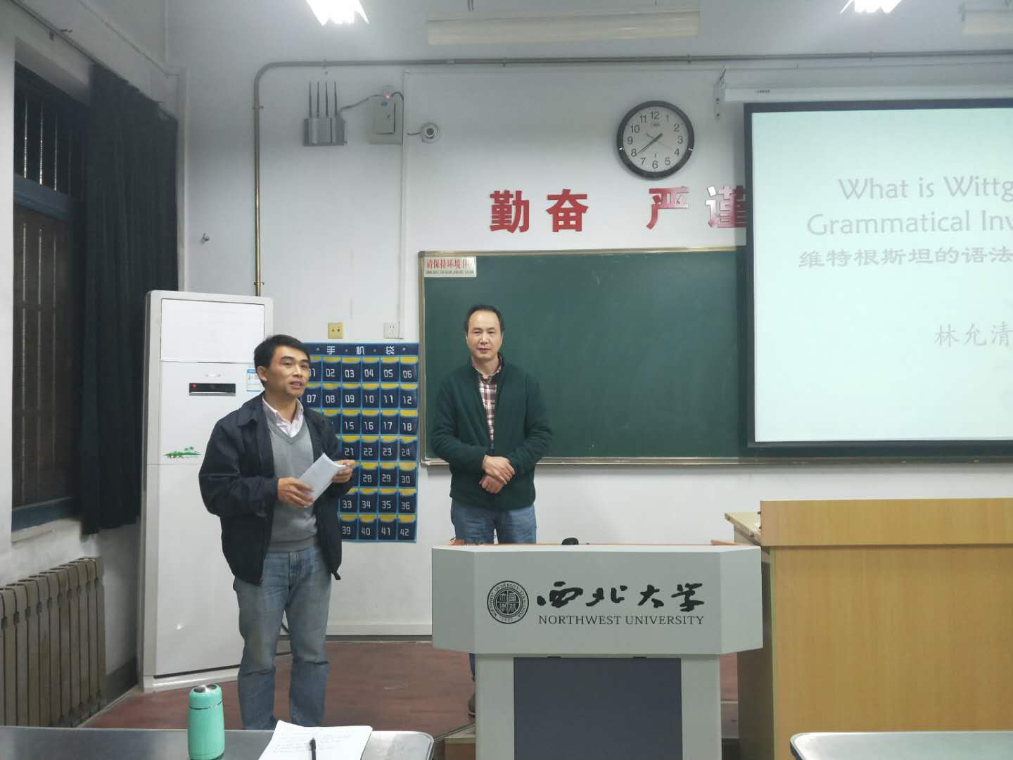 10月27日晚七点半,北京第二外国语学院教授林允清教授应邀做客我校纪念西北大学建校116周年人文社科高端讲座名家讲坛暨第十二届研究生学术月专家讲座,为我校师生带来了题为“维特根斯坦的语法研究是什么?”的主题讲座。本次讲座由我院副院长胡军良教授主持,院校师生反响热烈。